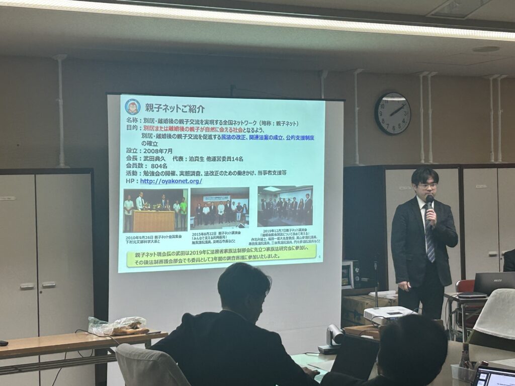 泊真生氏(親子ネット・代表)を講師として、お招きし、「共同親権について」を主題に勉強会を開催しました。